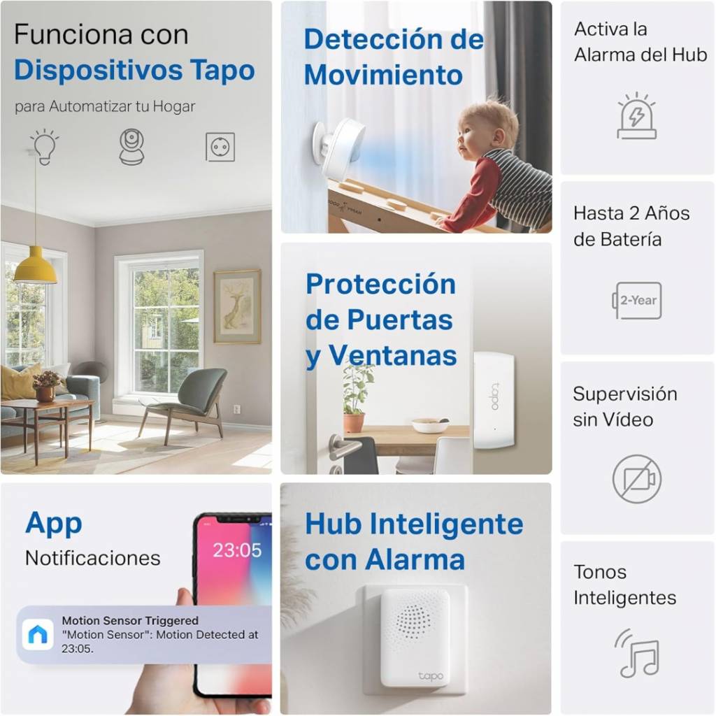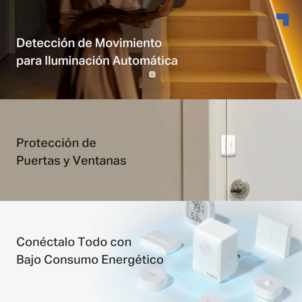 - Una forma de baja potencia de conectar todo: Tapo Hub sirve como el centro para tu hogar inteligente Tapo, vinculando sensores, interruptores y botones inteligentes a través de un protocolo inalámbrico de potencia ultrabaja. Esta tecnología extiende la duración de la batería de los dispositivos hasta 10 veces, en contraste con los dispositivos alimentados por el protocolo Wi-Fi.