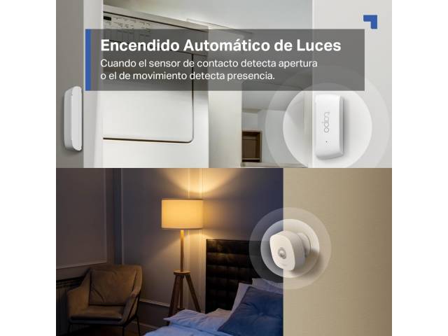 - Acción inteligente: con Tapo Smart Hub H100, puedes activar un acceso directo o controlar dispositivos Tapo (como enchufes inteligentes, luces inteligentes e interruptores inteligentes) en función de la detección del sensor o con una pulsación de botón. (Tapo H100 no se puede conectar directamente a enchufes inteligentes Tapo o iluminación inteligente, se requiere Wi-Fi de 2.4 GHz)