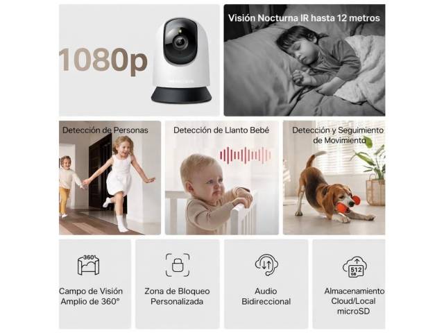Full HD 1080P, Visualiza hasta 360° horizontal y 130° en vertical, WiFi, Visión Nocturna a Color, Audio 2 Vías, Seguimiento.