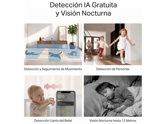 - Cámara IP WiFi para interior con movimiento horizontal y vertical para cubrir todo el ambiente.