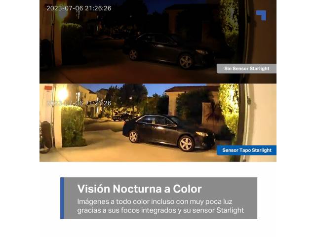 - Visión nocturna a todo color con sensor starlight y focos integrados para vigilancia en condiciones de poca luz.