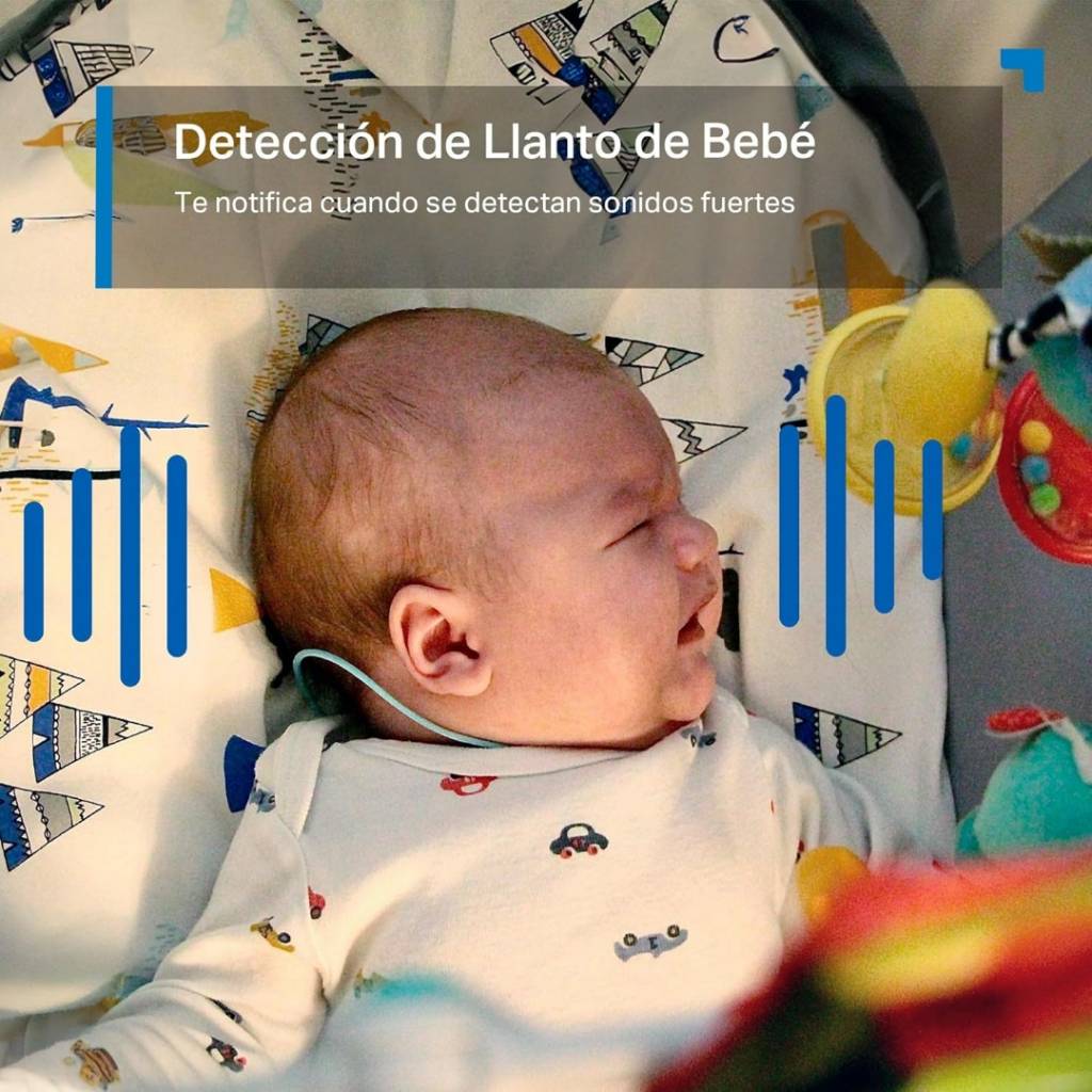 - Detección inteligente por IA: Reconoce personas y llanto de bebé.