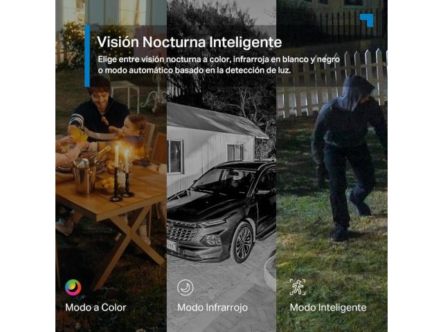 - Visión nocturna en color: LED IR y modo color para vigilancia nocturna.
