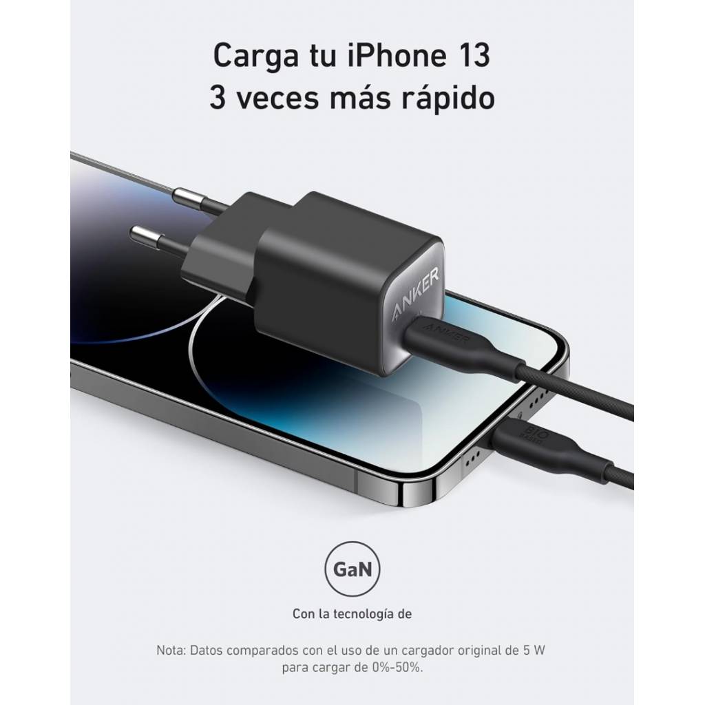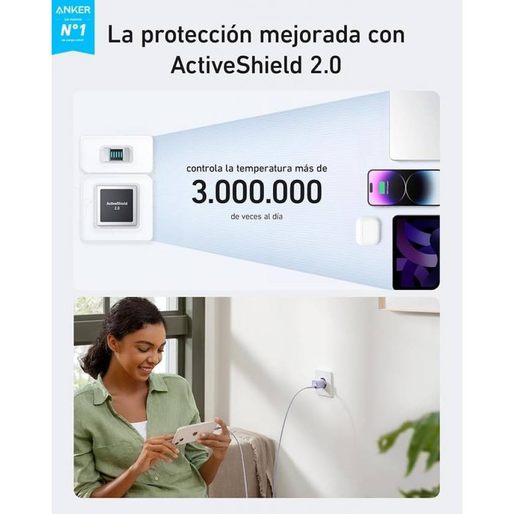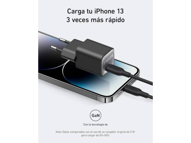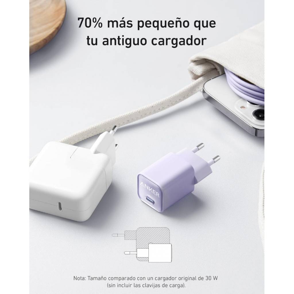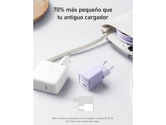 Cargador de pared compacto con tecnología avanzada para carga eficiente y potente en un formato reducido, ideal para smartphones, tablets y dispositivos USB-C modernos.