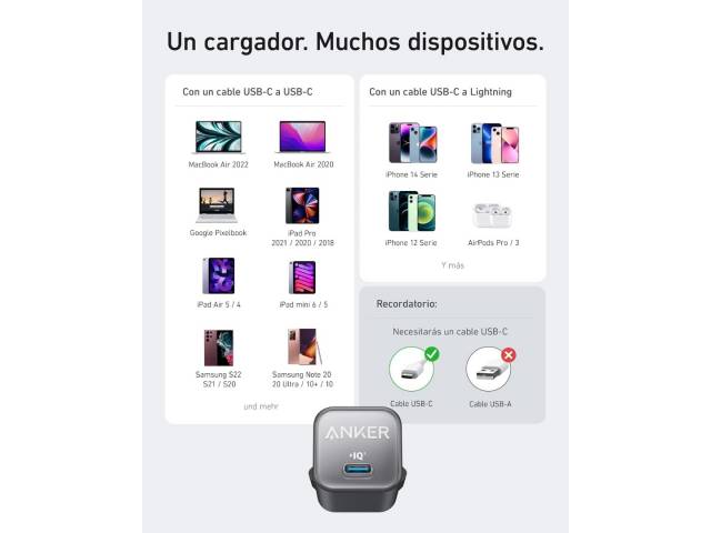 Compatibilidad: Smartphones, tablets, notebooks, auriculares, dispositivos USB-C