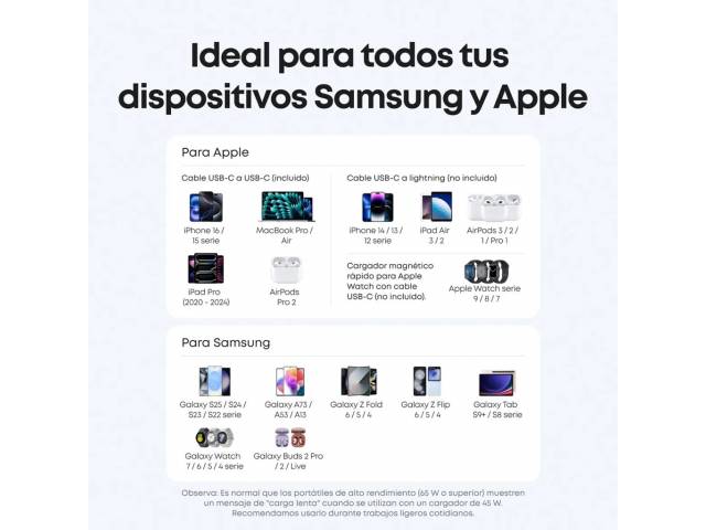 Compatibilidad: Dispositivos USB-C (smartphones, tablets, notebooks compatibles)