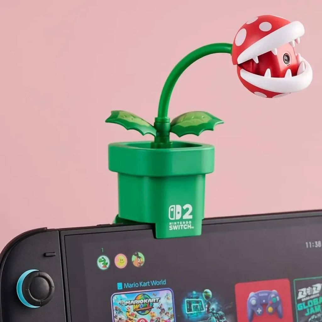 La Webcam HORI Planta Piraña para Nintendo Switch 2 es un accesorio oficial pensado para agregar funciones multimedia a tu consola mientras mantenés un diseño divertido y distintivo. Inspirada en la icónica Planta Piraña del universo Super Mario, permite capturar imagen y video, realizar videollamadas o transmitir contenido durante tus partidas. Cuenta con cuello flexible y una boca que se abre o cierra para cubrir la lente cuando no está en uso. Es compatible con los modos TV, tabletop y portátil, ofreciendo gran versatilidad para distintos escenarios de juego.
