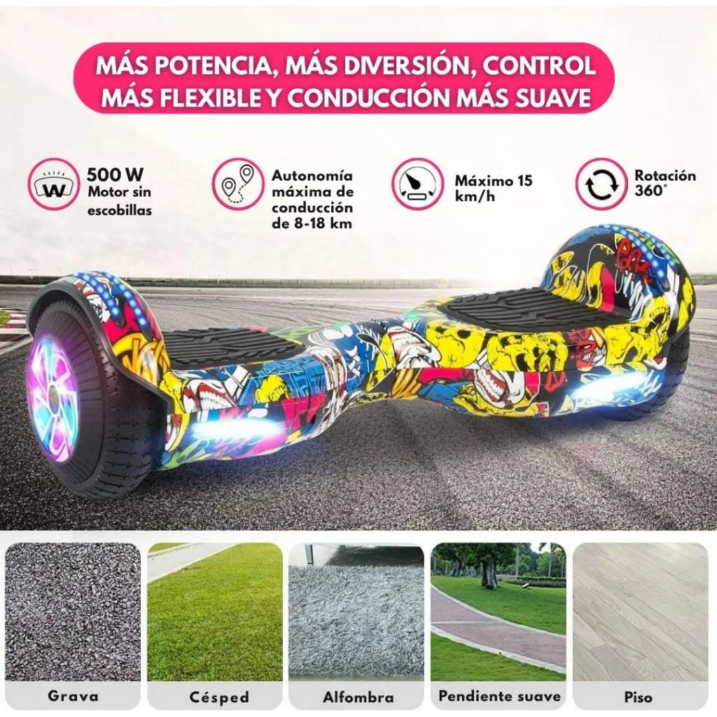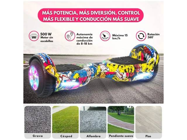 Este hoverboard combina diseño compacto con materiales duraderos. Disponible en variedad de colores y acabados (consultá stock actual), es perfecto tanto para regalar como para uso diario en parques, veredas, centros o interiores amplios.