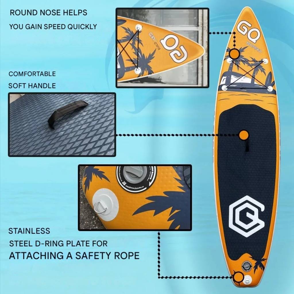 La tabla inflable Stand Up Paddle GQ-COCO está pensada para quienes buscan mayor estabilidad, capacidad de carga y mejor deslizamiento en el agua. Su diseño alargado y ancho proporciona un excelente equilibrio y control, ideal tanto para principiantes como para usuarios que desean realizar travesías más largas o actividades en pareja. Fabricada con materiales de alta resistencia y tecnología Drop-Stitch, ofrece una rigidez superior manteniendo un peso liviano y fácil de transportar.