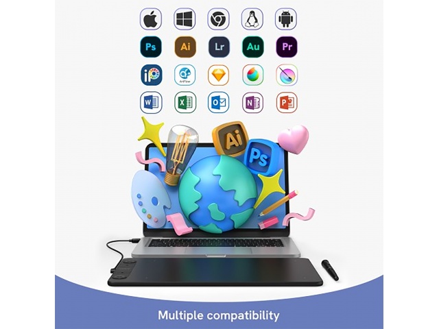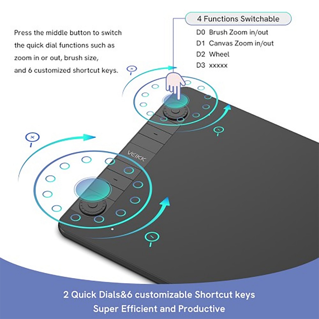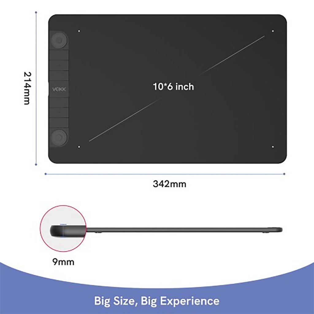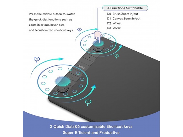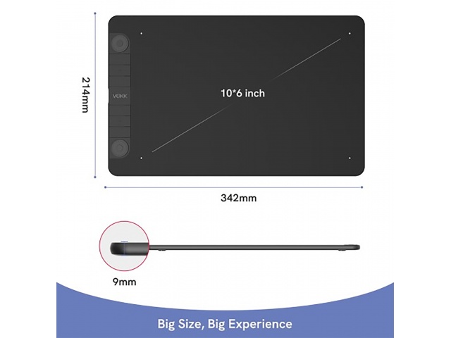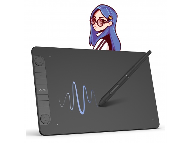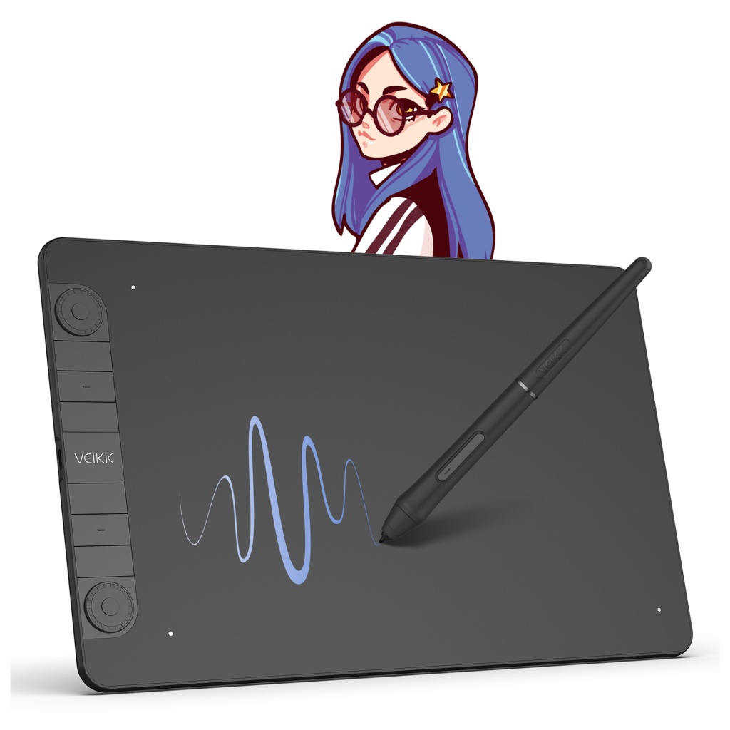 La VEIKK Creator VK1060PRO es una tableta digitalizadora profesional con área activa de 10" x 6", ideal para ilustración, diseño y retoque digital. Equipada con dos diales personalizables y seis teclas programables, ofrece un control preciso y fluido con su lápiz sin batería de 8192 niveles de presión.