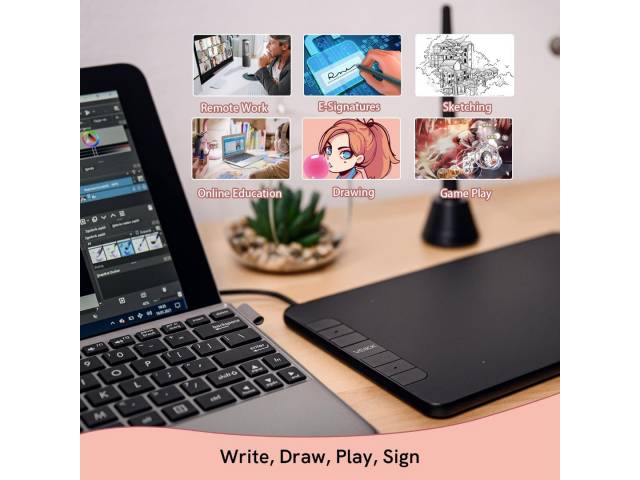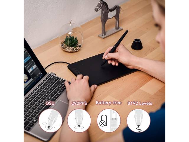 La VEIKK Creator VK640 es una tableta digitalizadora compacta y precisa, ideal para dibujo, edición y diseño gráfico. Con un diseño ambidiestro, lápiz sin batería y seis teclas programables, ofrece una experiencia fluida y cómoda tanto para principiantes como para profesionales.