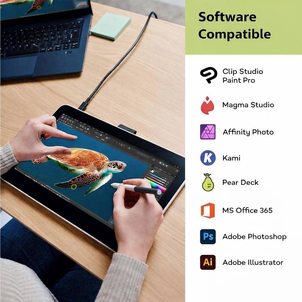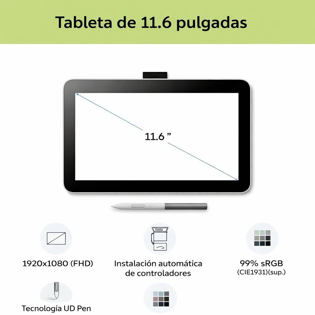 - Pantalla interactiva Full HD: Panel IPS de 12" con resolución 1920 × 1080 para imágenes claras y precisas.