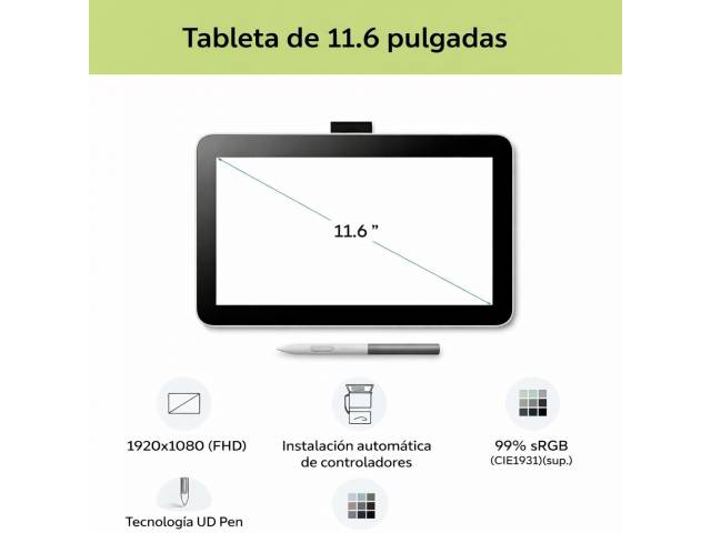 El Wacom One 12 (DTC121W0A) es un monitor interactivo creativo diseñado para quienes desean iniciarse o desarrollar su creatividad digital con una experiencia natural de dibujo. Su pantalla de 12 pulgadas Full HD con panel IPS ofrece imágenes claras y colores equilibrados, mientras que su superficie con textura similar al papel proporciona una sensación realista al dibujar. El lápiz Wacom One funciona sin baterías ni cables y ofrece alta precisión con miles de niveles de presión, permitiendo ilustrar, diseñar o editar con gran control. Gracias a su conectividad USB-C y compatibilidad con múltiples plataformas, se integra fácilmente con PC, Mac, Chromebook y dispositivos Android compatibles.